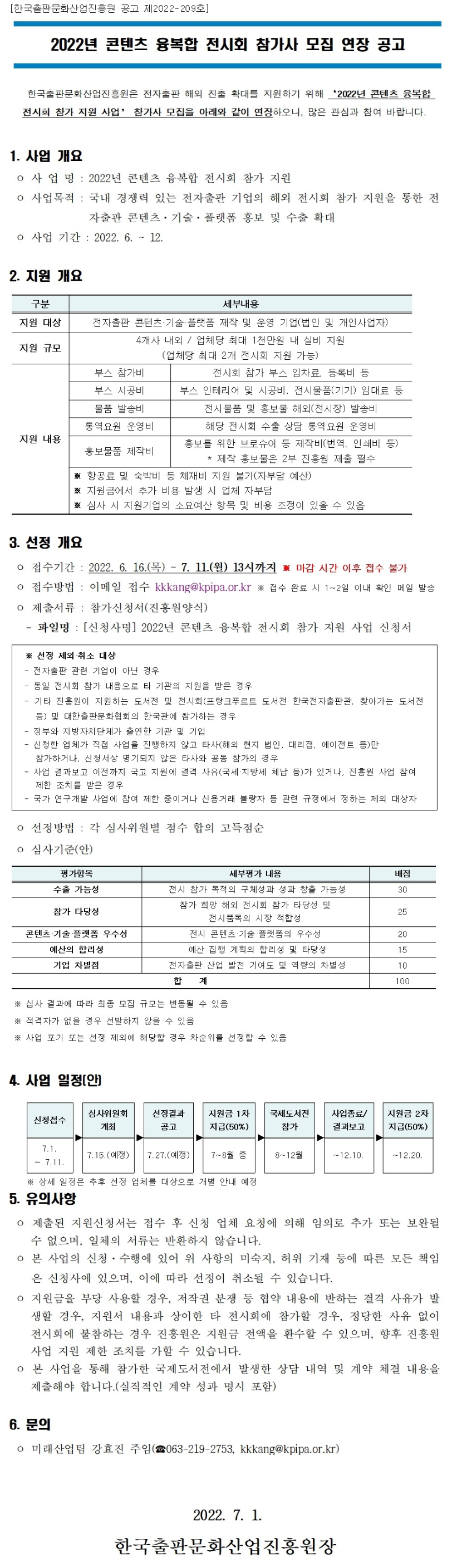 2022년 콘텐츠 융복합 전시회 참가사 모집 연장 공고