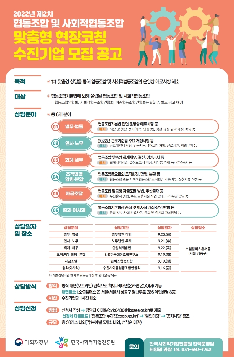 2022년 2차 협동조합 및 사회적협동조합 맞춤형 현장코칭 수진기업 모집 공고