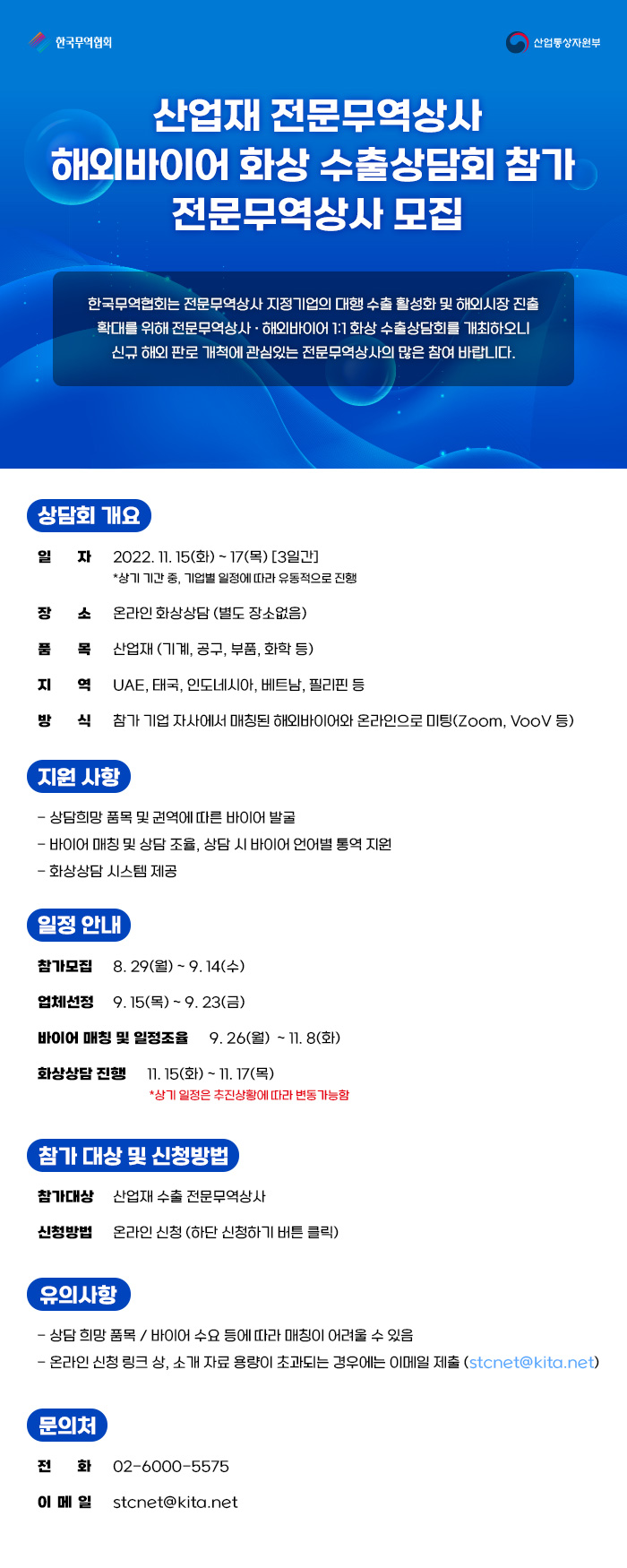 2022년 산업재 전문무역상사 해외바이어 화상 수출상담회 참가 모집 공고