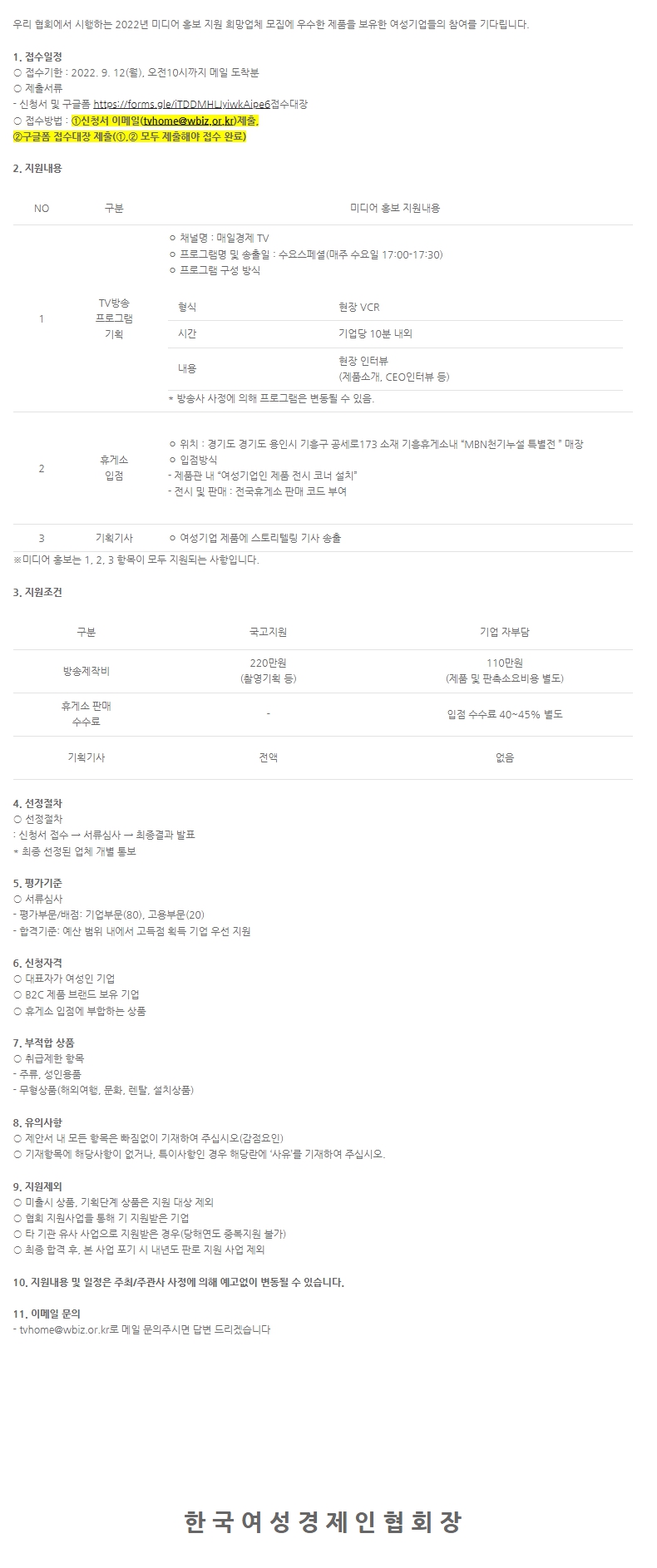 국내 여성기업의 역량 강화 및 성장을 위해 미디어를 통한 우수제품 홍보, 휴게소 입점, 기획기사를 지원해 드리는 사업입니다.