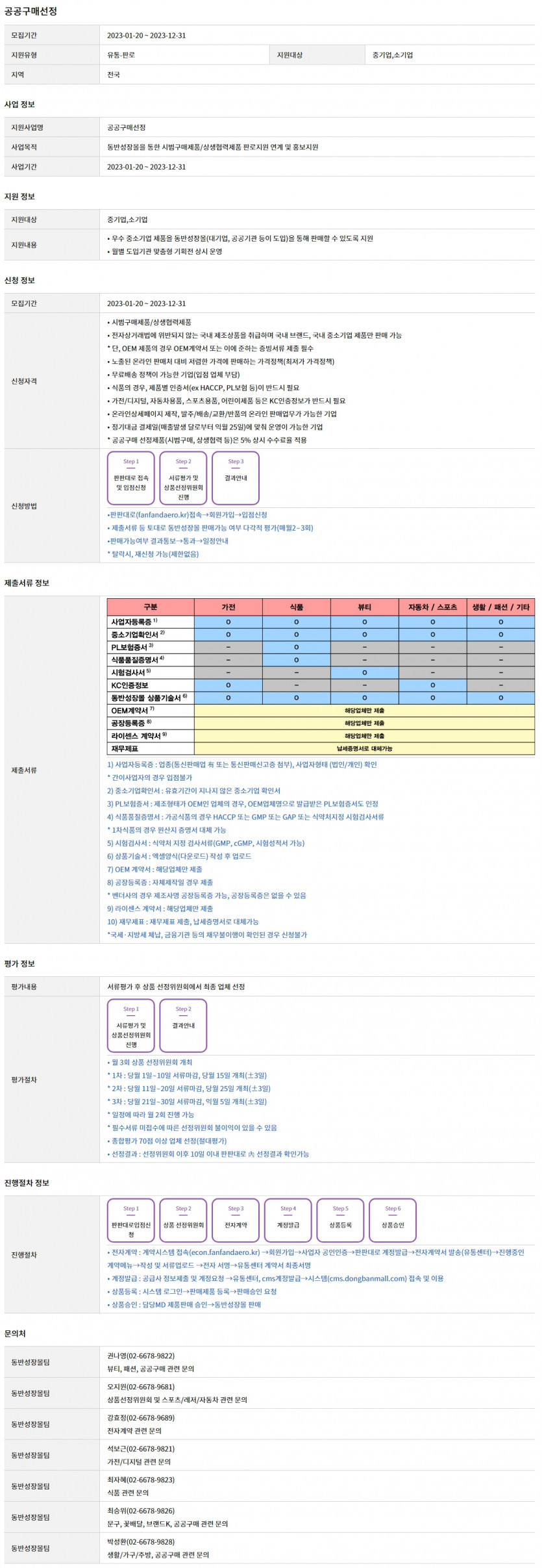 중소기업의 유통 및 판로개척을 위해 동반성장몰을 통한 시범구매제품/상생협력제품 판로 연계 및 홍보를 지원해 드리는 사업입니다.