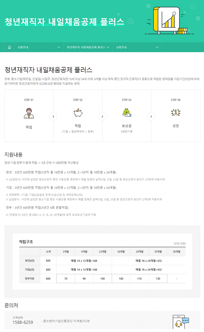 ☞ 만 15세 이상 34세 이하의 중소기업(제조업ㆍ건설업)에 연소득 3,600만원 이하이면서 6개월 이상 재직 중인 근로자