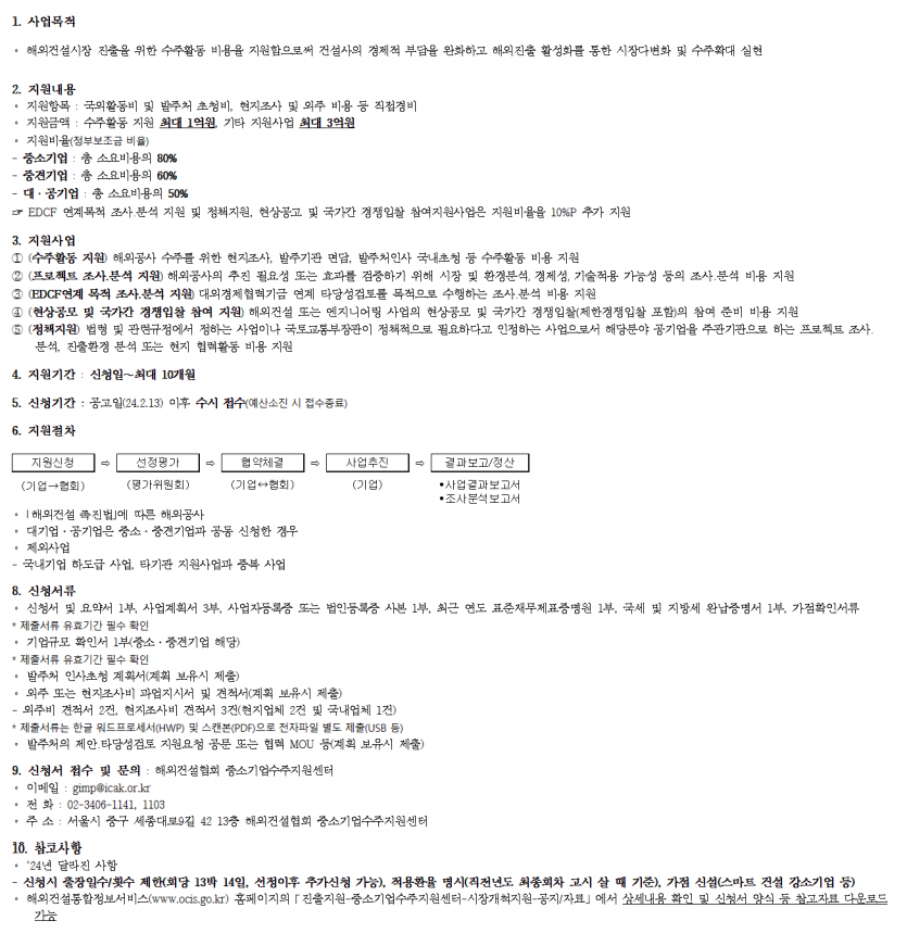 2024년 해외건설 시장개척 프로젝트 지원사업 공고