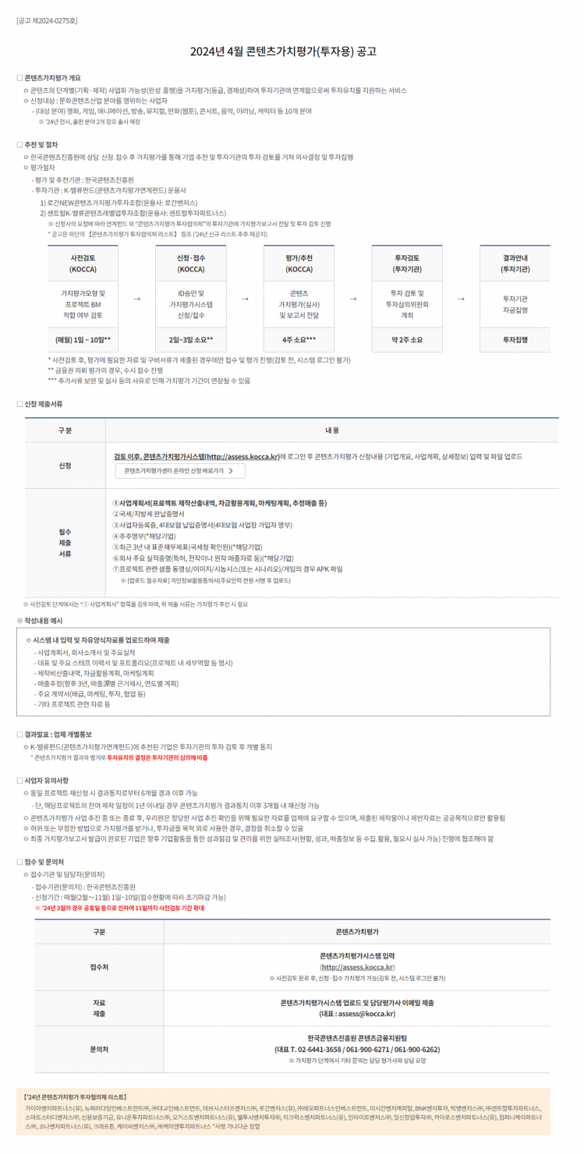 2024년 4월 콘텐츠가치평가(투자용) 공고