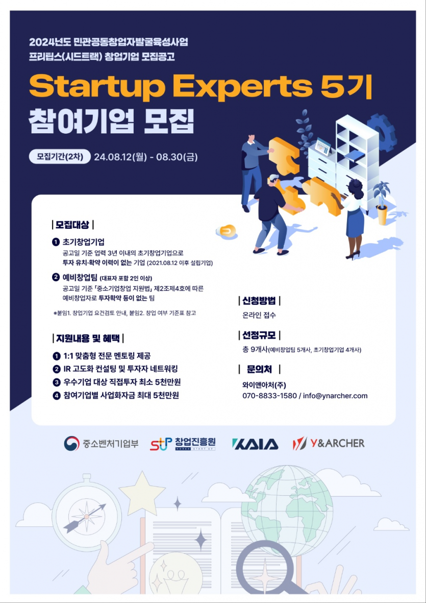 「2024년도 민관공동창업자발굴육성사업 프리팁스(시드트랙)」Startup Experts 5기 참여기업 모집을 다음과 같이 공고하오니 참여를 희망하는 창업팀은 안내 따라 신청하기 바랍니다.