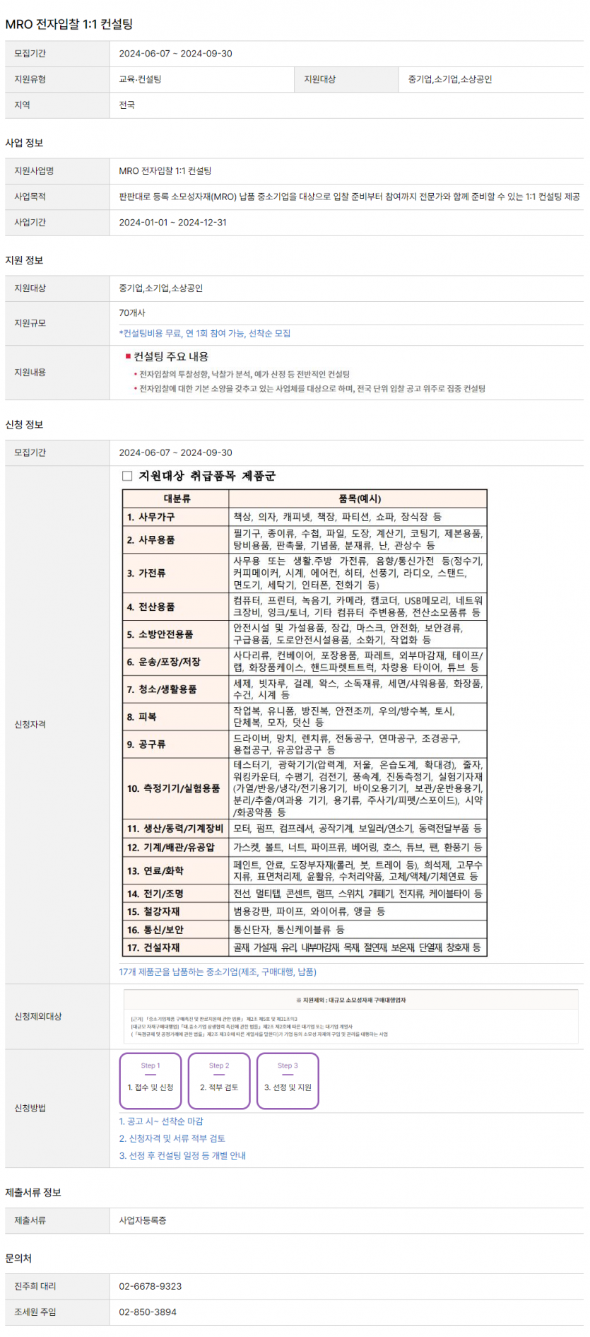 2024년 MRO 전자입찰 1:1 컨설팅 신청 공고